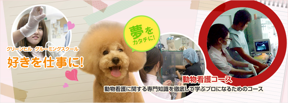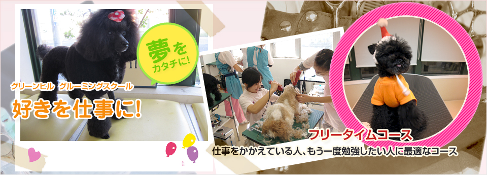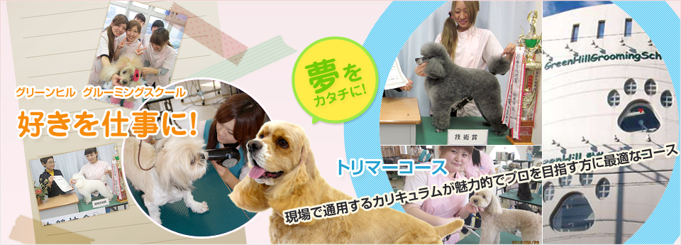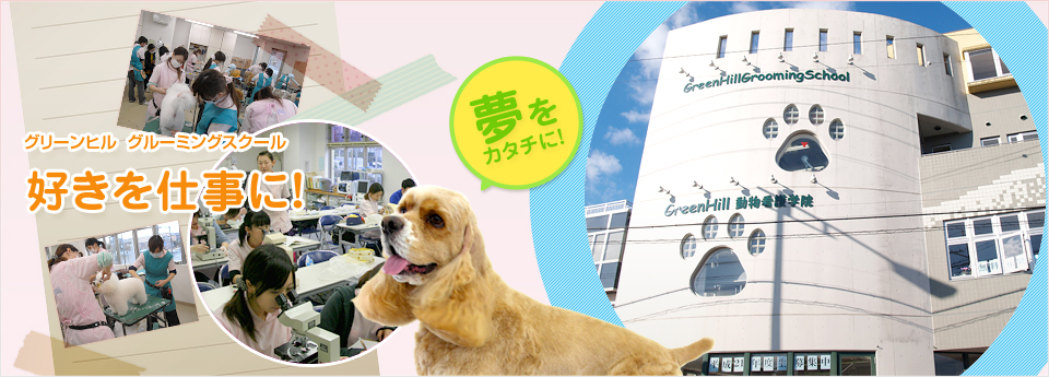 茨城県水戸市の千波湖近くに位置するグリーンヒルグルーミングスクールは、JKCトリマーと動物病院スタッフを養成するスクールです。通いやすく、就職先で即戦力になる技術と知識を身に付けることができます。